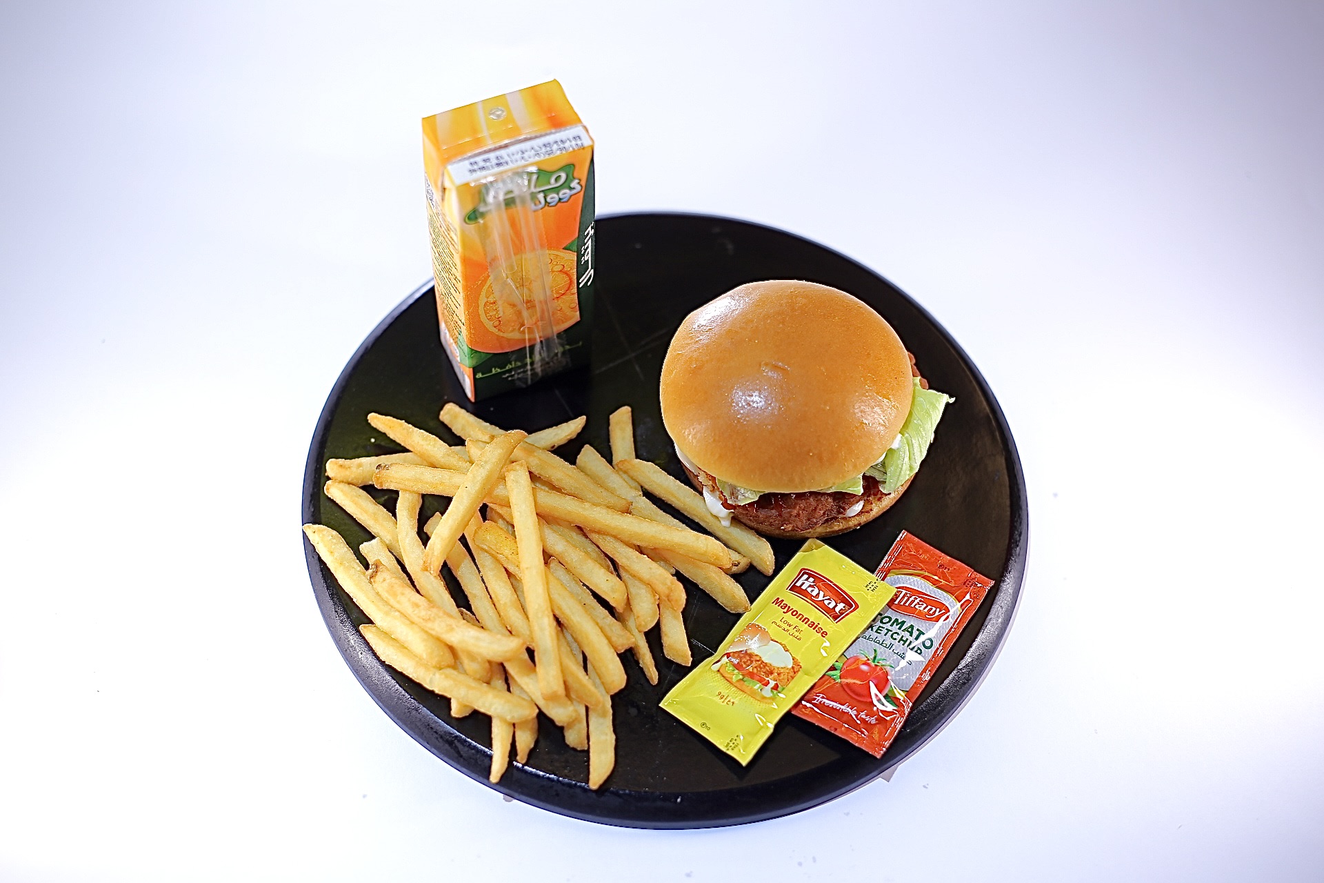 Potato bun original suce pickles slice cheese Beef patty 60 gm
